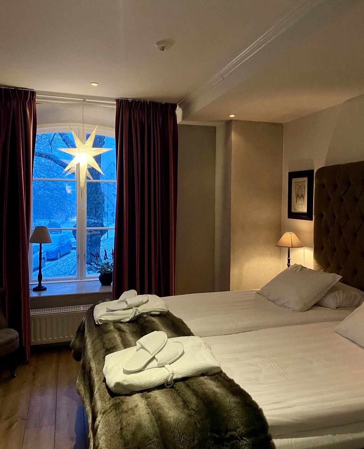 Lämna julstressen bakom er och njut av ett magiskt julpaket på våra hotell i Visby. Njut av rofyllda rum, varm atmosfär och god mat i ett vintrigt Visby. Kvällen bjuder på julmiddag på Joda, där deras klassiska jultallrik serveras i två serveringar – med allt det bästa från julbordet.